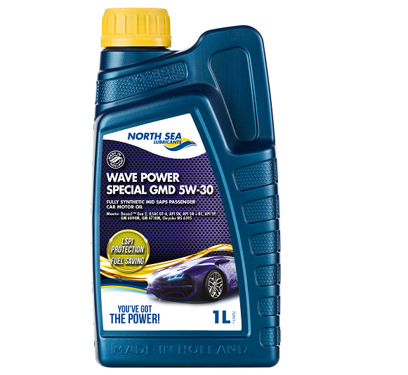 Wave Power Special GMD 5w30 is an advanced synthetic energy conserving motor oil specially developed for the most modern high output gasoline and turbocharged engines in passenger cars, sport utility vehicles and light-duty trucks, operating on ethanol-containing fuels up to E85. It is formulated to help improve & retain fuel economy and protect vehicle emission system & turbocharger components while meeting the latest GM Dexos1™ demands.